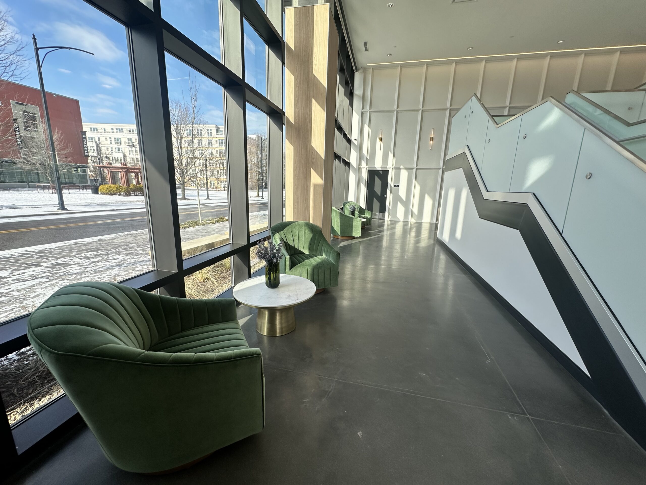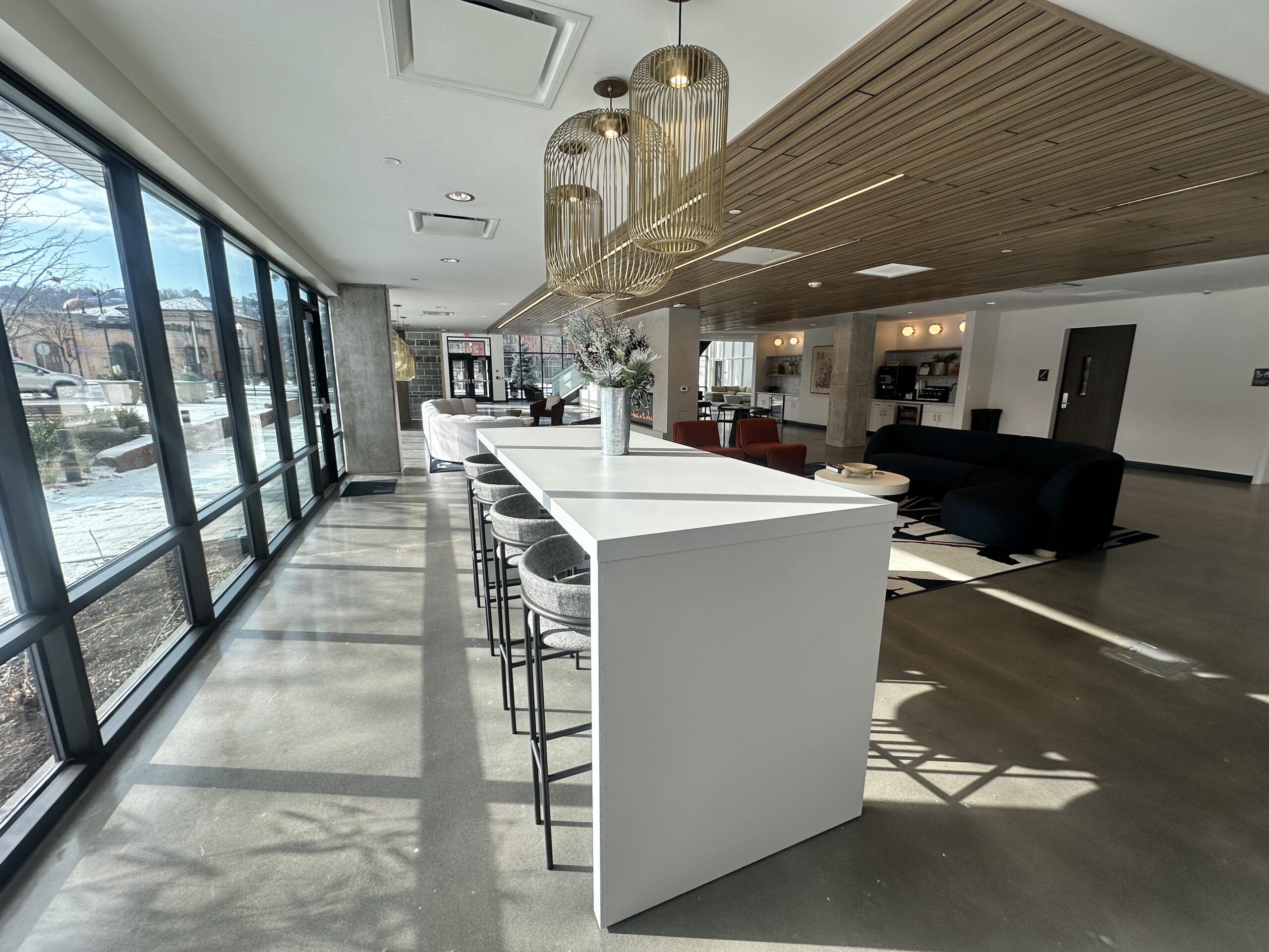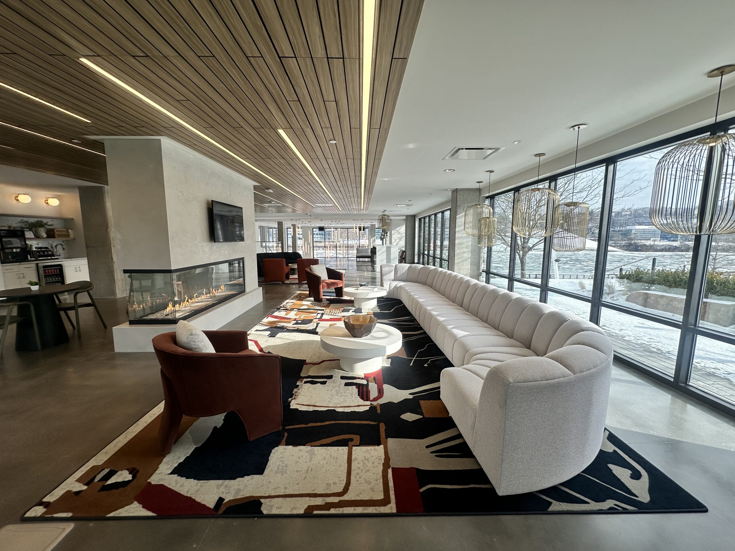 - Lobby and resident lounge spaces